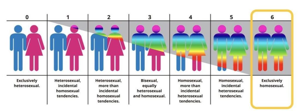 • 6: Exclusively same-sex/homosexual behavior or attraction